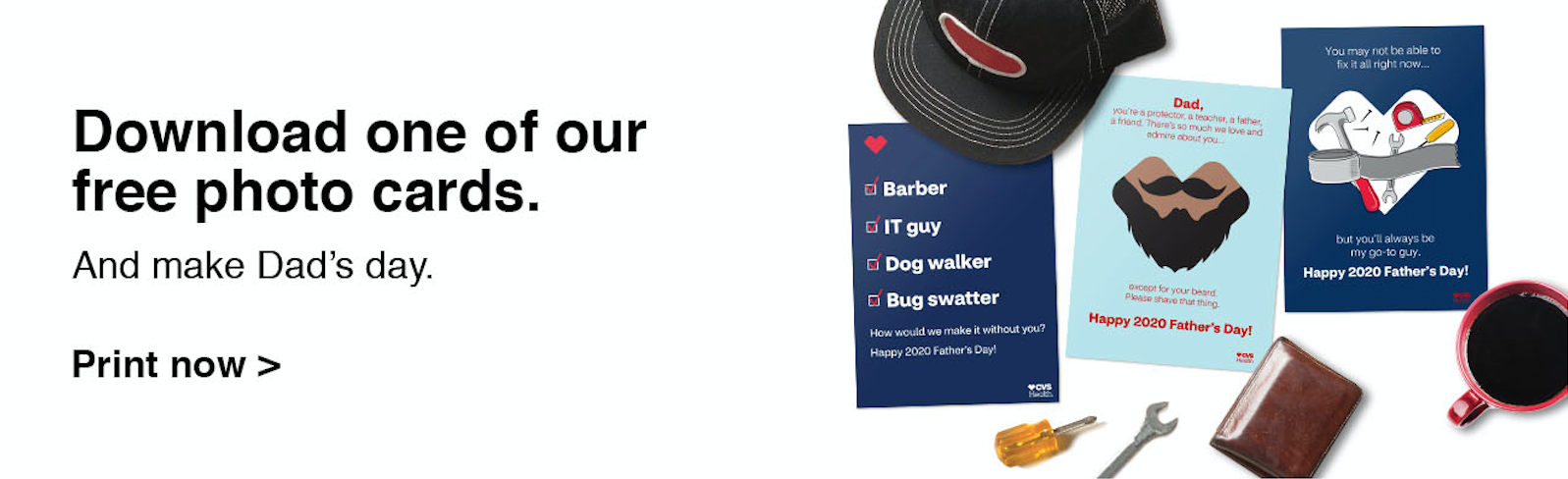Because of COVID-19, CVS wanted to do something special for Father's Day - so we designed a bunch of FREE printable cards. This project was sent out to whoever wanted to participate - copywriters came up with a bunch of greetings and designers created the corresponding art. I was assigned lead designer for this project and created about 50% of the art. I was in charge of collecting art form other designers and merging it with copy. I made all the final color and type decisions, and designed an email and website banner (top and bottom of this page) to advertise this effort.